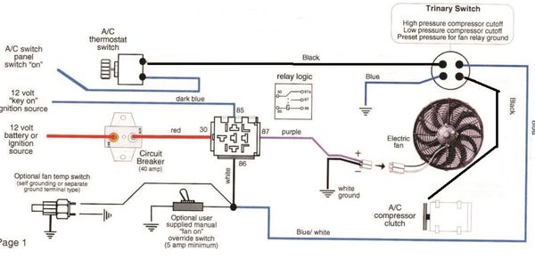 There are several options when it comes to wiring your AC. This is just one of several we use regularly especially on gen-4 engines where AC control is typically run by the BCM. This diagram shows you how to use a four wire trinary switch. The specific trinary switch must be of correct pressures for your specific setup. If utilizing the Fueled Racing AC condenser and or AC line kit please contact us for specific part number needed if you did not already add the switch to your AC line order.